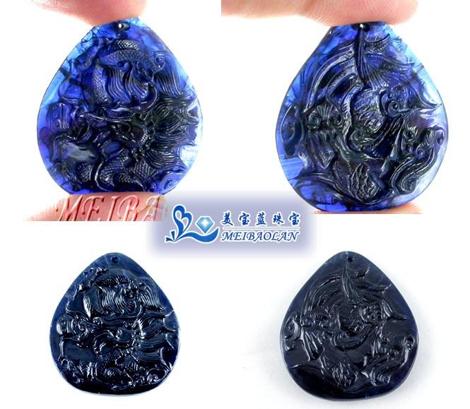 · 【美宝蓝】天然蓝宝石雕刻挂件*连年有余!