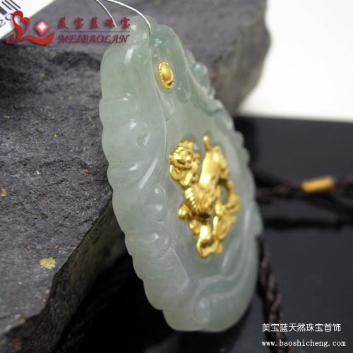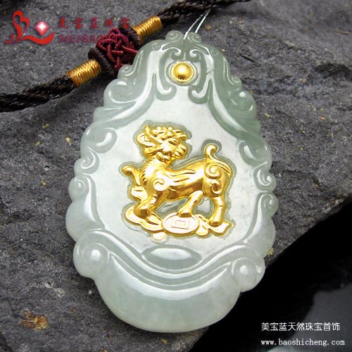 | 【名称】美宝蓝珠宝*千足金镶玉“麒麟”挂件 |