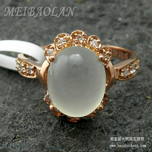 | 【名称】美宝蓝珠宝18k金镶翡翠配钻戒指(oe091) |